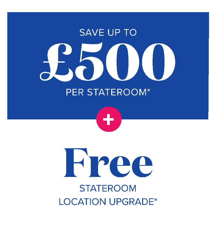 Dreaming of the perfect stateroom? Whether it's a higher deck for breathtaking ocean vistas or a central spot for effortless access to all the action, we're making it easier to secure your perfect location. Prime locations are highly sought after, so book a premium-located stateroom and pay for a lower-grade stateroom within the same category*. Choose from over 700 cruises in 2026, from Mediterranean fly cruises, Alaskan adventures, and Caribbean getaways to convenient sailings from Southampton. Plus, unlock even more joy with savings up to £500 per stateroom on selected cruises^. This exceptional value offer ends 30 June. Elevate your cruise experience today.