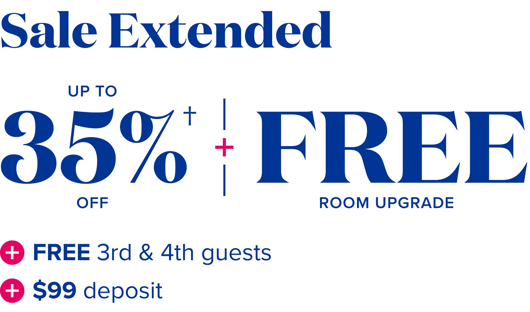 Free 3rd & 4th guest offer applies to cruise fare only for recipient and guests covered by the Offer (if any) and excludes Government Taxes & Fees, and the Required Cruise Fees & Expenses. Also excludes required non-refundable deposit (if any) and other cruise-related expenses and travel expenses. Actual amounts owed by recipient and applicable guests may vary and shall be calculated at the time of booking. First or Second guest in stateroom will be responsible for their cruise rates as well as the free 3rd & 4th guest’s out of pocket charges and expenses. Offer only applies: (i) to Offer recipient and guests covered by the Offer (if any) and (ii) to the third or fourth guests booked in the same stateroom as the first and second guests. Approximate value of free sailing for 3rd and 4th guests varies from $99 to $3,605 USD per person. There is no guarantee of Free Offer availability at time of booking. Offer is available on select voyages and guest will know if their selected voyage is available for free 3rd/4th guests if, when selecting to travel with 3rd or 4th guests, whether the fare summary page lists $0 or whether it lists an actual cruise fare amount for such guests.
