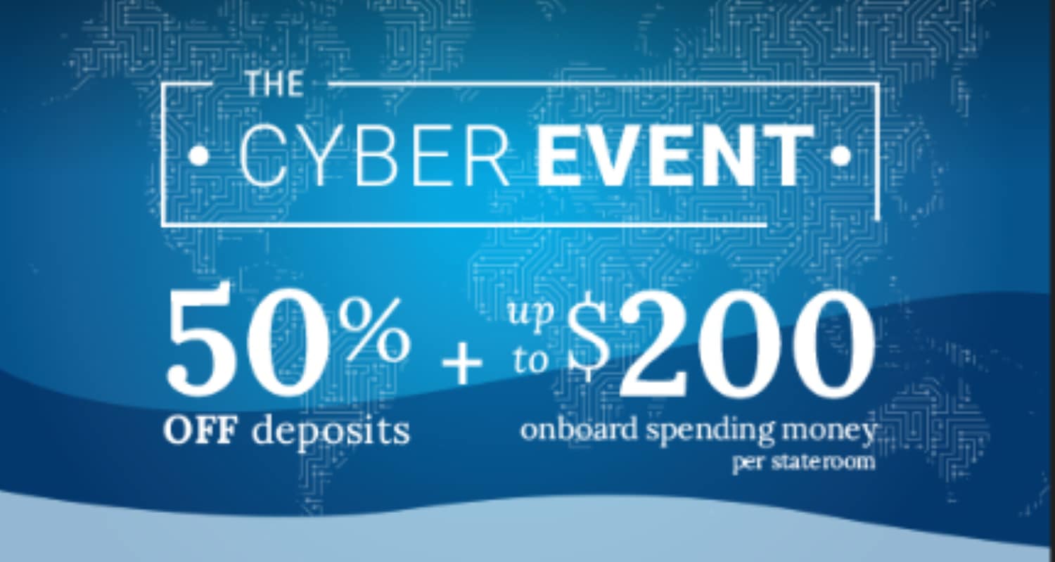 “The Cyber Event” cruises and cruisetours sale starts at 12 am PST on Nov. 17, 2021 and runs through 11:59 p.m. PST on Nov. 30, 2021, and is available to residents of the 50 United States, Canada, Puerto Rico, Mexico, Bermuda and the District of Columbia who are 21 years of age or older.