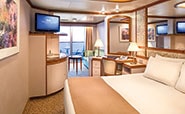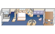 The luxurious Mini-Suite offers approximately 323 square feet of comfort and a separate seating area with a sofa bed for lounging or sleeping a third passenger. The spacious balcony is approximately 57 square feet and the bathroom offers a combination tub and shower. Some Mini-Suites also have a pullman bed to accommodate a 4th passenger.