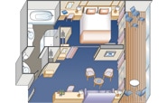 Premium accommodations and luxurious appointments are the signature of our expansive 319 to 730-square-foot Suites. Suite staterooms include a spacious cabin and large 114 to 181-square-foot balcony, along with special suite-only benefits. All Suites include a separate seating area with a sofabed, walk-in closet, full bathroom and deluxe amenities.