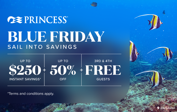 The Princess Cruises “Blue Friday” sale ends at 11:59 p.m. PST on December 2, 2025, and is available to residents of the 50 United States, Canada, Puerto Rico, Mexico, Bermuda and the District of Columbia. Some restrictions apply, with standard terms and conditions for all bookings. More details about this limited-time offer can be found at www.princess.com/cruise-deals-promotions/limited-time-offer.