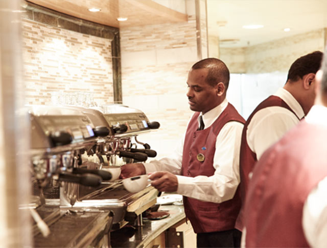 Start your day or end a meal with your coffee-based beverage of choice, thanks to our new partnership with Lavazza. Enjoy a made-from-scratch pastry with your coffee at breakfast from the International Café or recharge with an iced frappé at Coffee & Cones. Savor a fresh cup of coffee any time you crave it, and delight in specialty espresso drinks prepared by professional baristas. A full menu of espresso-based selections are available on board and can be customized to suit your taste.