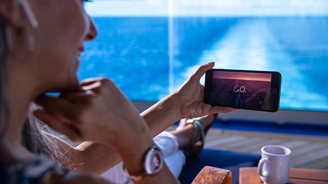 MedallionNet Wi-Fi sets the industry standard for internet at sea. FaceTime your pooch in the morning. Stream your favorite shows by the pool in the afternoon. Post your Chocolate Journeys dessert from your dinner table. Thanks to state-of-the-art technology, you can now stay connected with Wi-Fi coverage as you sail.